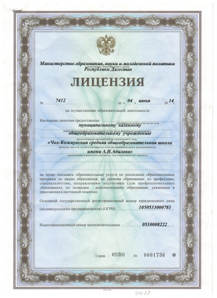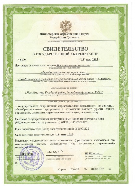 Полное наименование образовательной организации* Муниципальное казенное общеобразовательное учреждение "Чох-Коммунская средняя общеобразовательная школа имени А.И. Адилова"