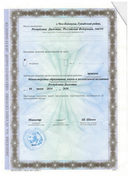 Адрес местонахождения образовательной организации* 368350, Дагестан Респ, Гунибский район, Чох с, село Чох-Коммуна